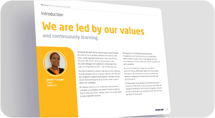 Mimecast UK Gender Pay Gap Report 2023 Introduction We are led by our values and continuously learning. Mimecast believes that to ensure equity and fairness Mimecast is committed to ensure diversity, we must strive to actively advocate for women and transparency and equity across our organisation, other under-represented groups in our workforce. with inclusion as part of our core values. We want We place DEI at the centre of our business and our employees to feel respected, valued, represented educate manager and Leaders to understand the and successful. value of hiring within under –represented groups. As part of us wanting to improve our e昀昀orts We work tirelessly to ensure that we hire for diversity, across inclusion, Mimecast reports on the Gender that we actively seek to promote women and that we Pay Gap to demonstrate transparently where we Janet Prosper put programs in place which support women and all are as a company and where we would like to be under-represented groups to further their careers going forward. CHRO within our company. MIMECAST We have seen more women promoted into senior We believe that for us to continuously evolve and position in 2023 than in any other year and while we innovate as a company, we need to foster a culture recognise that this is still a work in progress, we are that is re昀氀ective of our society, and to do so we need proud of what we have achieved so far and the plans to ensure gender equality. we have for the future. 02